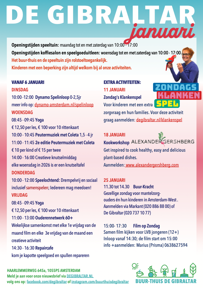 Mis je een activiteit? Of verzorg je zelf een activiteit? Stuur ons dan een mail, dan kunnen we gezamenlijk kijken naar de mogelijkheden.